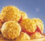 3. Con las manos, forma las trufas, colocándo una cucharada de la mezcla de leche condensada y nueces en el centro de tu mano y formando bolitas de 1 cm. de diámetro aproximadamente. A continuación pásalas por el cacahuate molido.